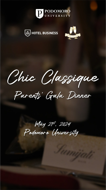 Parents’ Gala Dinner merupakan acara tahunan yang diselenggarakan oleh mahasiswa semester 2 program studi Bisnis Perhotelan atau yang seringkali disebut Hotel Business Program (HBP). Pada tahun ini, mahasiswa angkatan 2023 menjadi penyelenggara dari acara eksklusif ini. Dengan tema Chic Classique, nuansa modern dan elegan disuguhkan bagi para tamu. Mulai dari dekorasi hingga makanan semua dipersiapkan oleh para mahasiswa sebaik mungkin. Pada Parents’ Gala Dinner kali ini, para mahasiswa menyajikan berbagai menu French Cuisine, mulai dari appetizer, soup, entrèe, main course, hingga dessert.